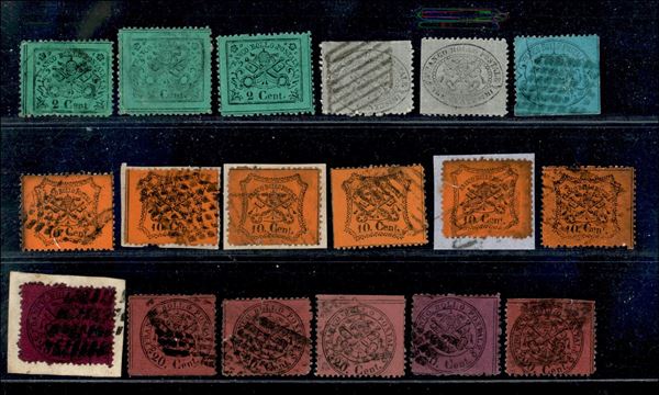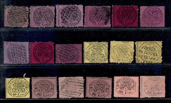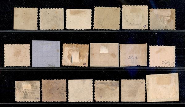 1868 - Terza emissione - insieme di 36 pezzi con 7 valori diversi di varie tonalità - gomma originale usati e su frammenti - da esaminare