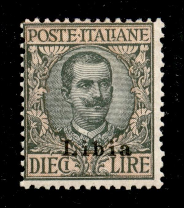 1915 - 10 lire Floreale (12/I - secondo tipo) - gomma originale con traccia di linguella - A. Diena + E. Diena + Raybaudi + Colla + cert AG