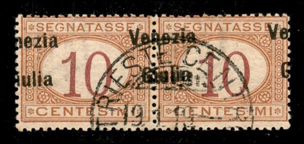 1918 - 10 cent (2cb) - coppia orizzontale usata con soprastampe oblique (a cavallo) - cert. AG
