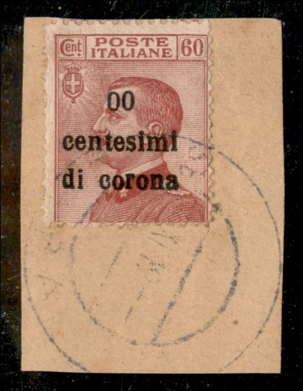 1919 - 60 cent di corona Michetti (10l) - errore 00 - usato su frammento