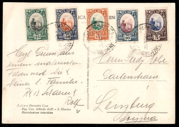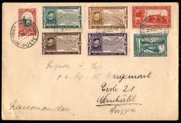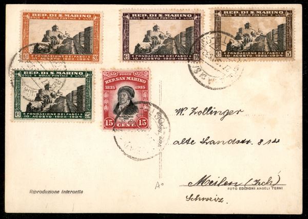 1932/1938 - Una busta e due cartoline affrancate con valori delle serie Vedute Melchiorre Garibaldi e Fondazione Fascio - tutte dirette in svizzera - bell'insieme