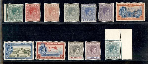 1938/1948 - Giorgio VI e Vedute - insieme di 12 valori della serie - gomma originale e integra - 1 sterlina gomma integra angolo di foglio