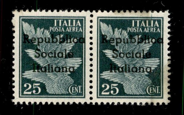 1944 - 25 cent (12 + 12 l) in coppia con u pił piccolo a destra - gomma integra (vetrificata)