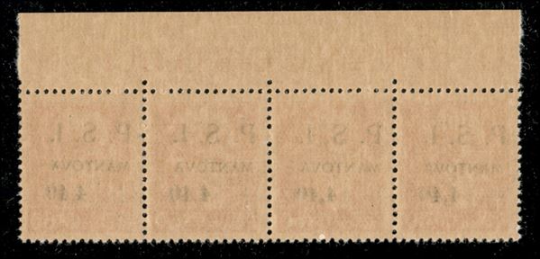 1945 - 60 cent + 4,40 lire (5) - striscia orizzontale di quattro bordo foglio con punti diversi dopo le lettere - gomma integra (400+)