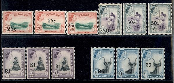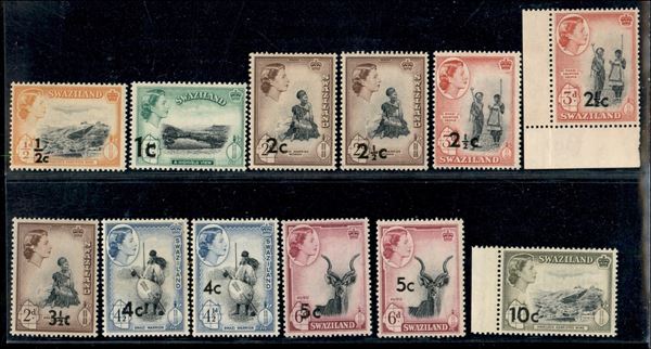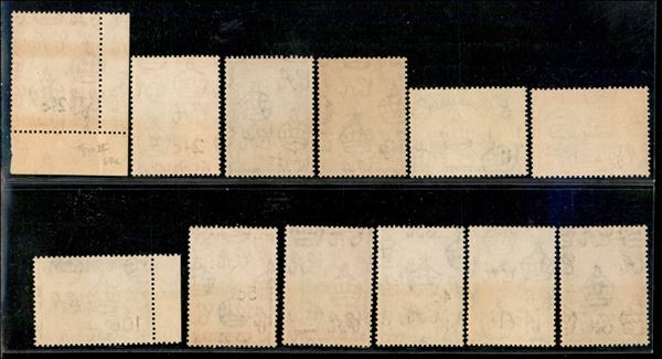 1961 - Elisabetta II e Vedute soprastampati con nuovo valore (67/79 I + II + III tipo) - emissione completa - gomma integra - certificato Fiecchi per il 50 cent III tipo + Royal Philatelic Society 25 cent II tipo