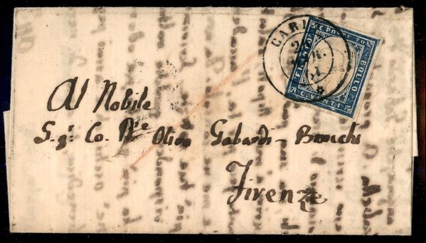 20 cent cobalto grigiastro (15Dd) stretto a sinistra - su letterina da Carpi a Firenze del 24.3.61