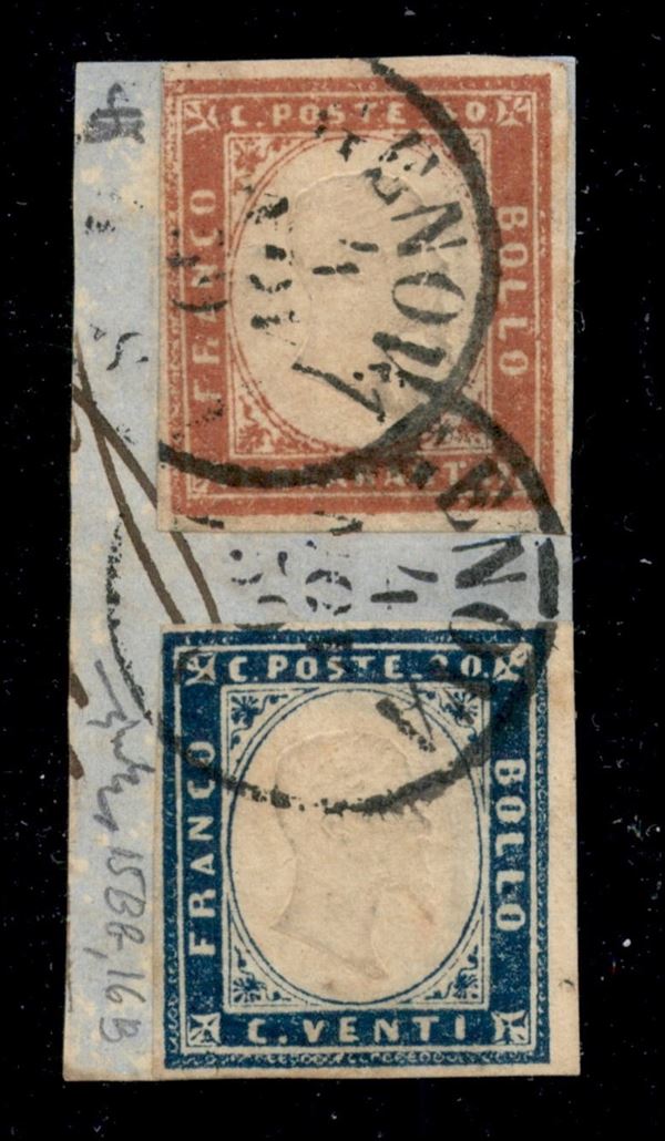 20 cent indaco oltremare (15Bb) + 40 cent rosso (16B) usati su frammento - Genova 4 nov 59 - ottimi margini - Chiavarello + Luigi Gazzi