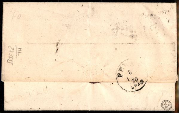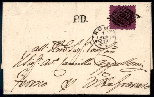 20 cent solferino (28) su lettera da Roma a Fermo del 7.2.70 - annullo a griglia + doppio cerchio + P.D. - bell'insieme