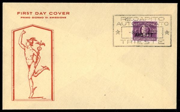 20 lire Recapito Autorizzato (5) su busta FDC annullato con bollo a cartella - Trieste 8.2.52
