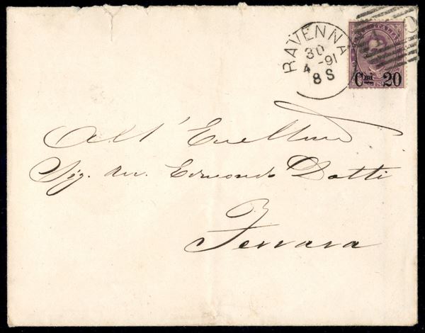20 su 50 cent Umberto (58) su busta da Ravenna a Ferrara del 30.4.91 - ex coll. Provera