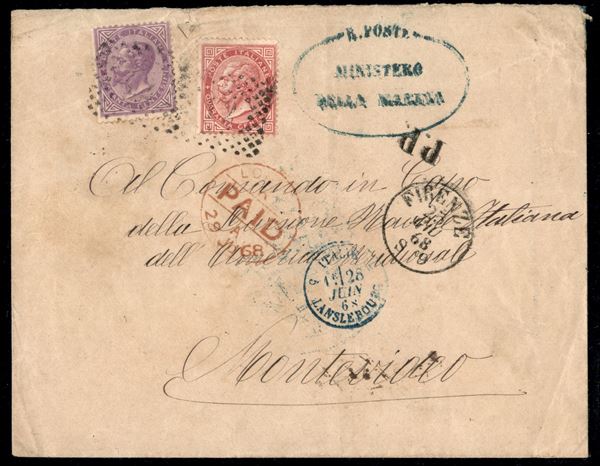40 cent + 60 cent (20 + 21) su busta da Firenze a Montevideo del 25.6.68 - annulli in transito sul fronte - molto bella - Diena - ex coll. Provera