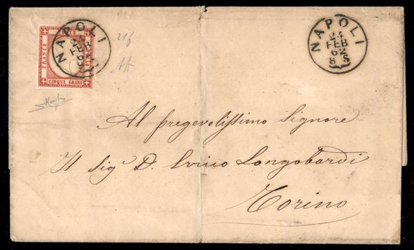 5 grana (21f) su letterina da Napoli a Torino del 24.2.62 - Raybaudi + Diena