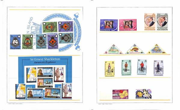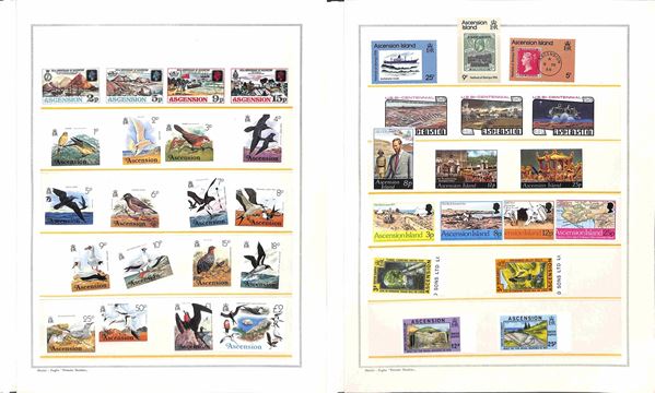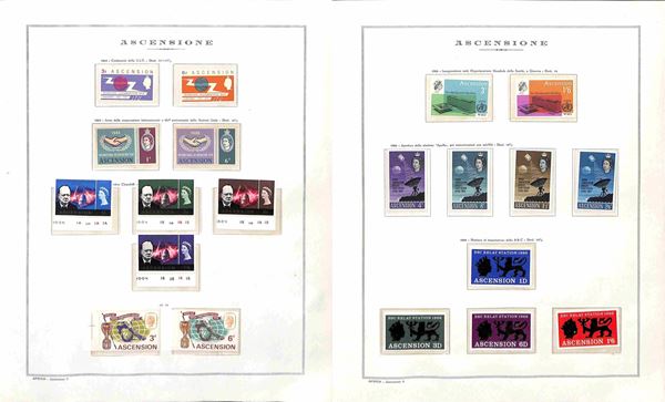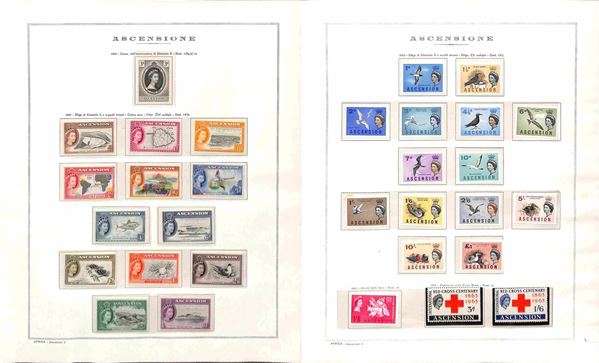 ASCENSION - 1953/1979 - Collezione avanzata di valori serie complete minifogli e foglietti del periodo montata in fogli Marini - gomma originale solo un paio di valori della prima serie il resto gomma integra - catalogo oltre € 700