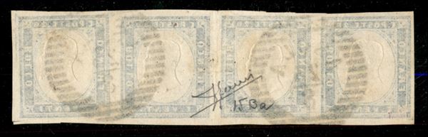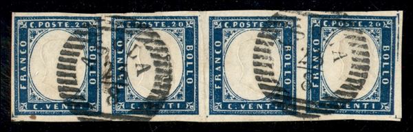 Asola 23.8 - striscia di quattro del 20 cent cobalto oltremare (15Ba) - interessante impronta su fresca striscia - Sorani