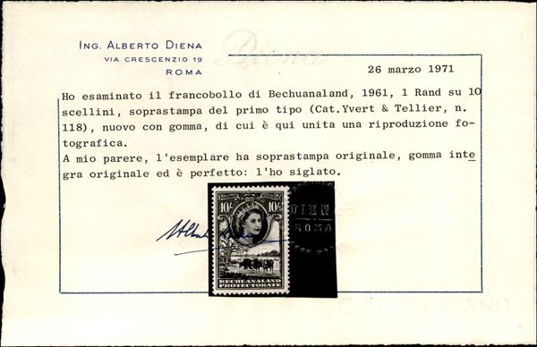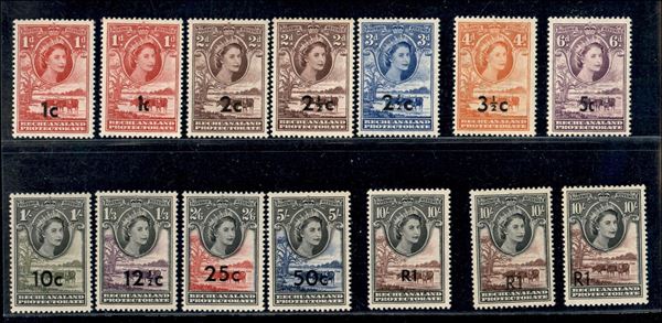 BECHUANALAND PROTECTORATE - 1961 - Soprastampati nuovo valore (144/154) - serie completa - 1 Rand tipo I con certificato Alberto Diena - gomma integra - freschi e belli