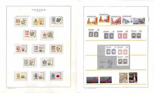 CANADA - 1952/1977 - Collezione di valori serie complete ed alcuni libretti del periodo montati in album e fogli Marini - gomma integra