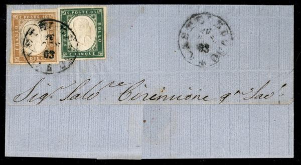 Castelbuono (Pti 7) - 10 cent (14do) + 5 cent (13Dc) su testatina di lettera per Cefalù del 16.1.63