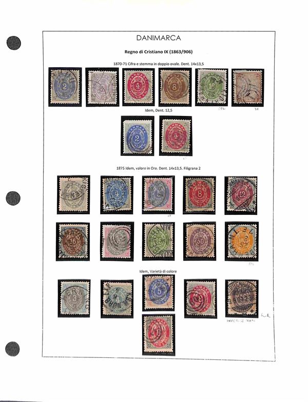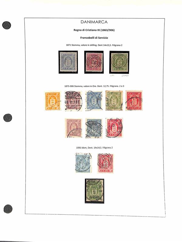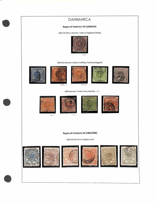 DANIMARCA - 1851/1871 - Bellissima collezione avanzata compresi i servizi di valori prevalentemente usati del periodo montati su album e fogli artigianali - valore di catalogo 9.000++ - molto bella