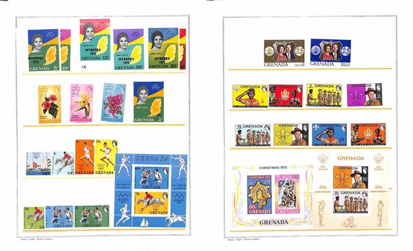 GRENADA - 1953/1974 - Collezione di valori serie complete e foglietti del periodo montati in album e fogli Marini - gomma integra - catalogo oltre € 450