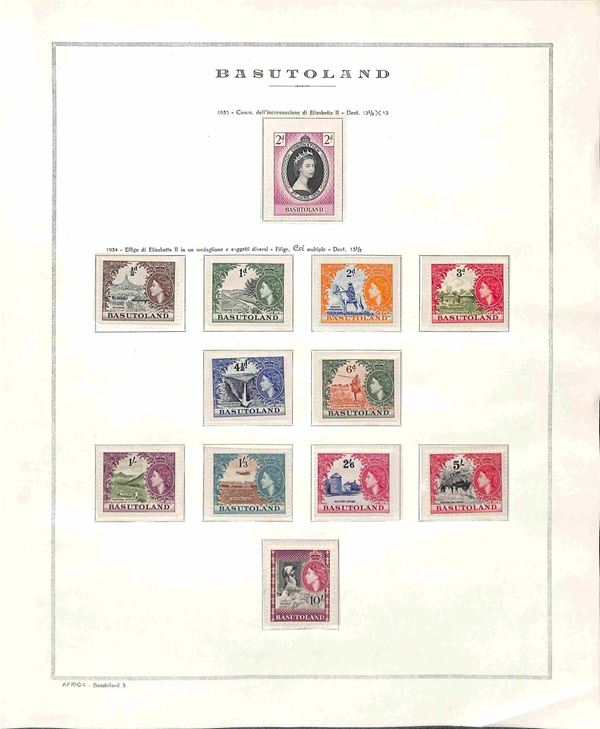 LESOTHO/BASUTOLAND - 1953/1967 - Collezione di valori e serie complete del periodo montati in fogli Marini - gomma integra - catalogo oltre € 350 - notato 10 cent su 1 schilling (67 II tipo)