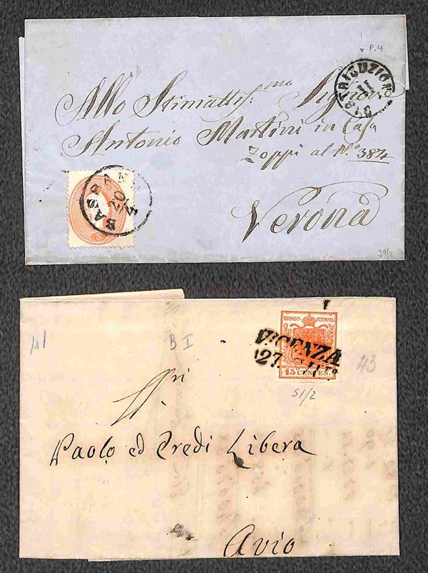 LOMBARDO VENETO - 1851/1865 - Piccolo insieme di 10 buste e letterine con annulli e affrancature diverse - bell'insieme - merita esame