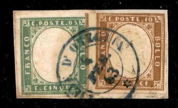 Pieve d'Oneglia 4.2.63 (azzurro - Pti 5) - 5 cent (13Dc) + 10 cent (14Co) su frammento - Diena + Oliva