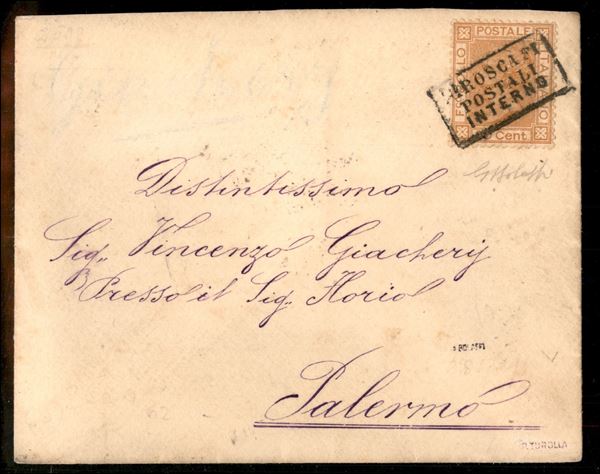 Piroscafi Postali Interno - Unico annullatore di 20 cent (28) su bustina da Napoli a Palermo del 14.12.77 (?) - splendida - Bolaffi - ex coll. Provera
