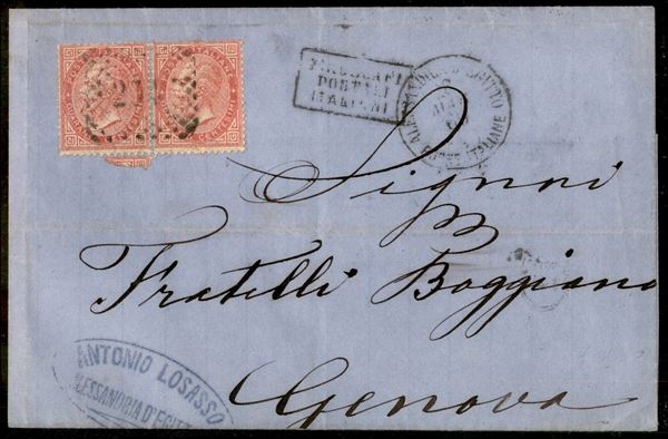 Piroscafi Postali Italiani - Coppia del 40 cent Vittorio Emanuele (20) da Alessandria d'Egitto a Genova del 28.3.68