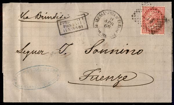 Piroscafi Postali Italiani - Lettera affrancata con 40 cent Vittorio Emanuele (20) da Alessandria d'Egitto a Firenze del 10.4.69