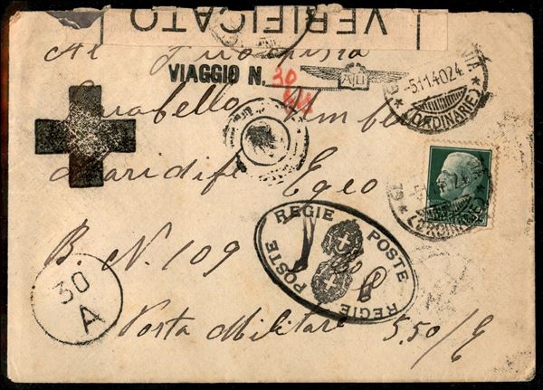 Prigionieri di Guerra - Posta Militare 550 E - Busta affrancata con 25 cent Imperiale (248) con diversi e interessanti timbri di transito - molto bella e insolita