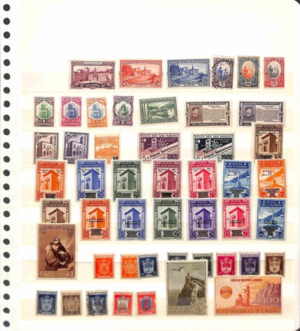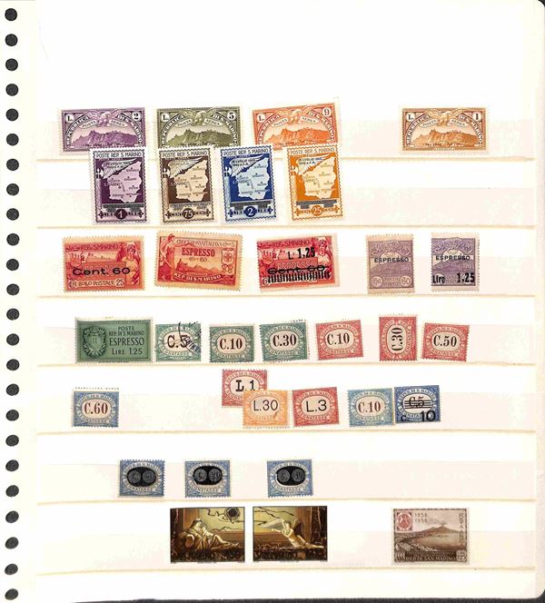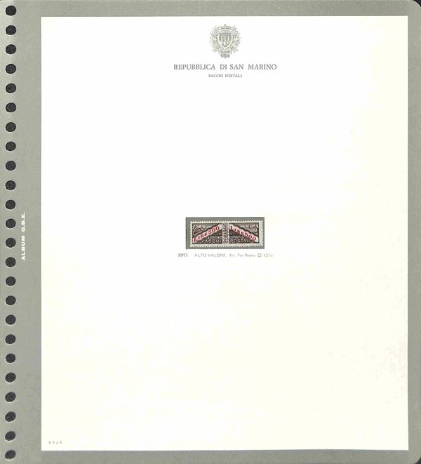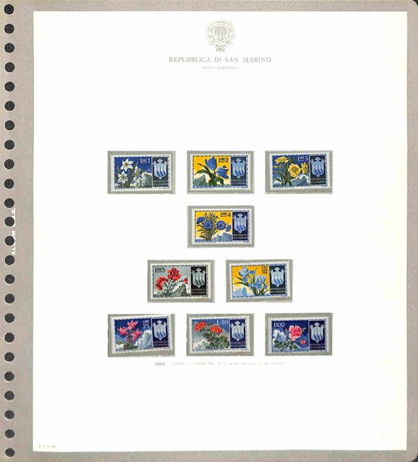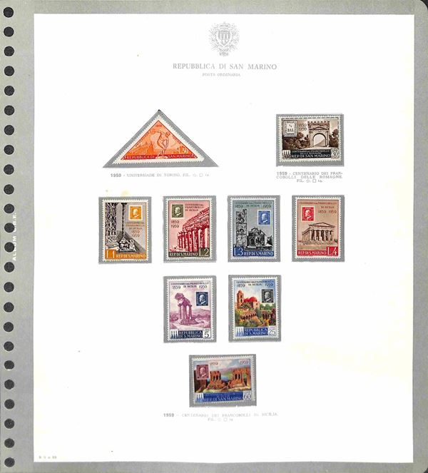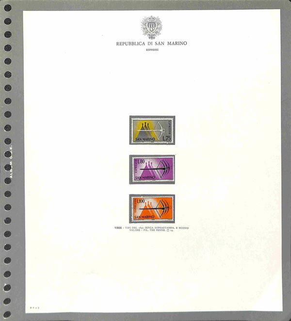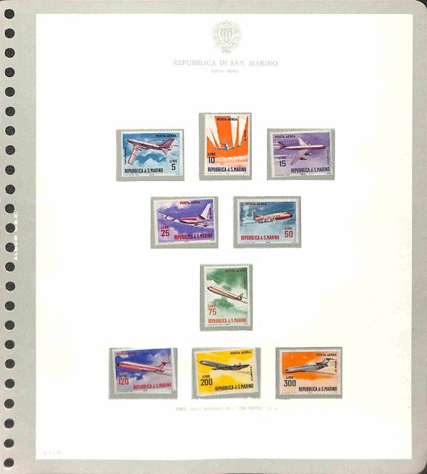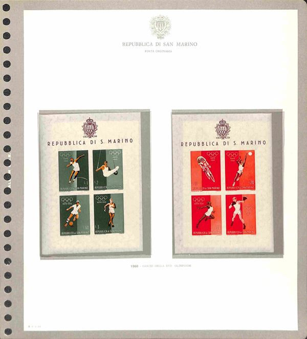 SAN MARINO - 1877/1986 - Collezione di valori serie complete e foglietti del periodo con molte mancanze nel primo periodo ma completa dal 1962 montata in 3 eleganti album GBE con custodia - gomma originale integra e usati - valore di catalogo oltre 1500 €