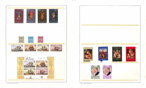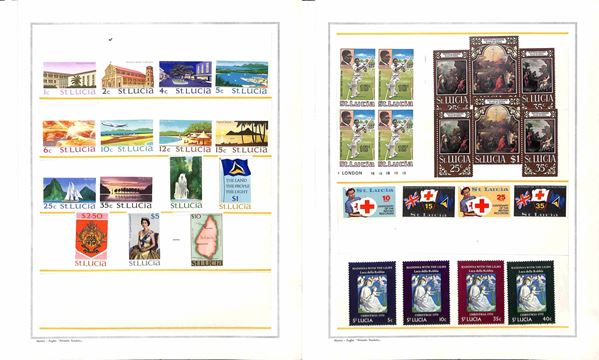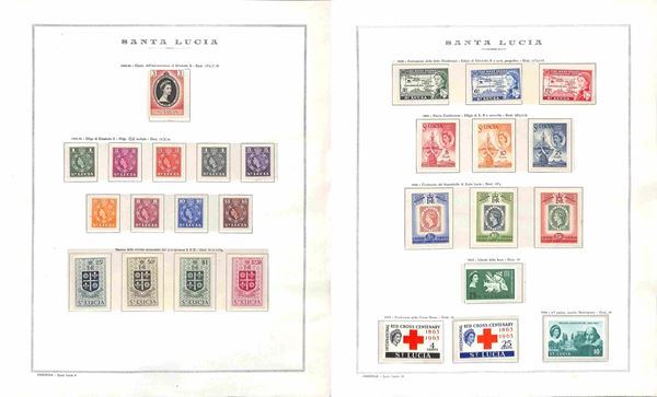 ST. LUCIA - 1953/1975 - Collezione di valori serie complete e foglietti del periodo montati in fogli Marini - gomma integra - catalogo oltre € 100