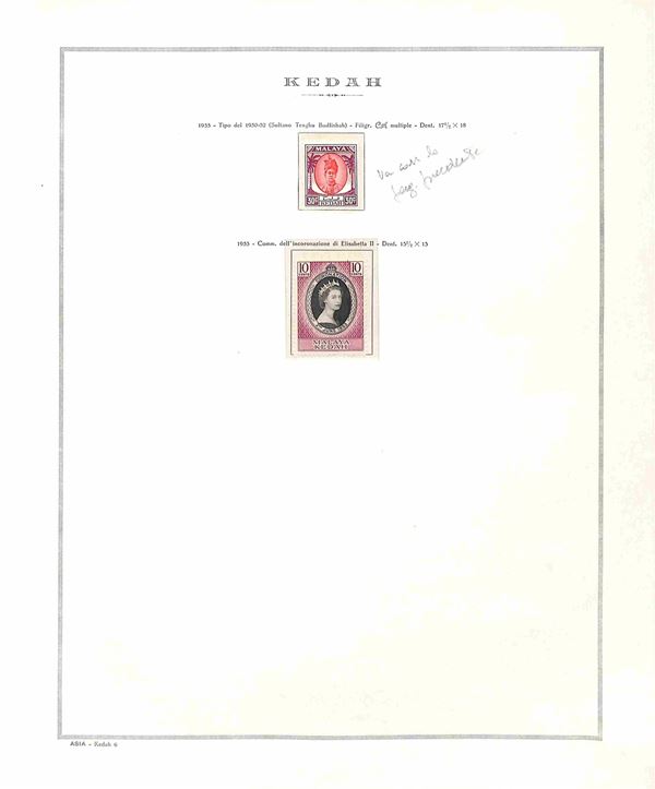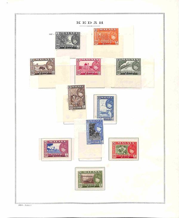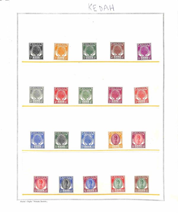STATI MALTESI - Kedah - 1950/1957 - Insieme di valori e due serie complete del periodo montati in fogli Marini - (61/81) gomma originale (82/93) gomma integra