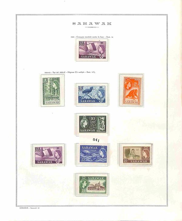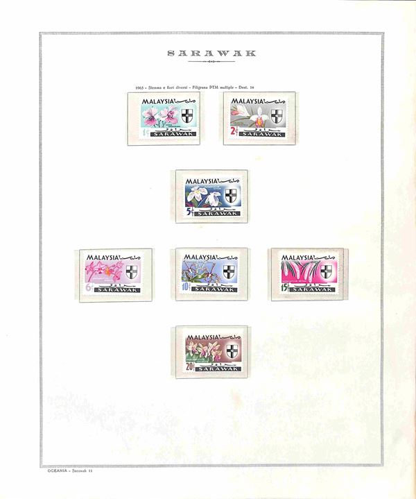 STATI MALTESI - Sarawak - 1953/1965 - Insieme di valori e tre serie complete del periodo montati in Fogli Marini (187/202 + 204/218) - gomma integra
