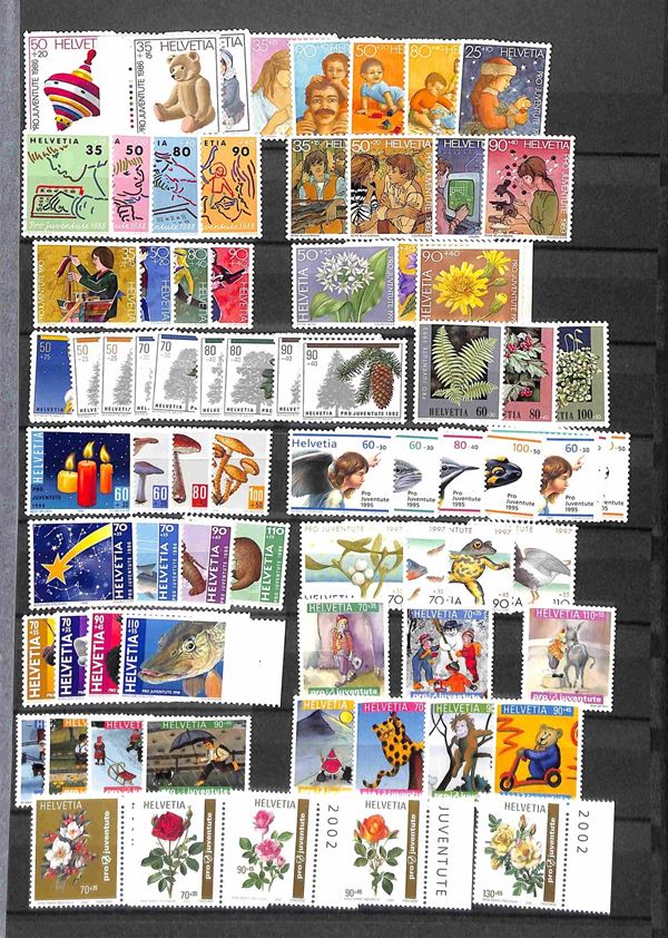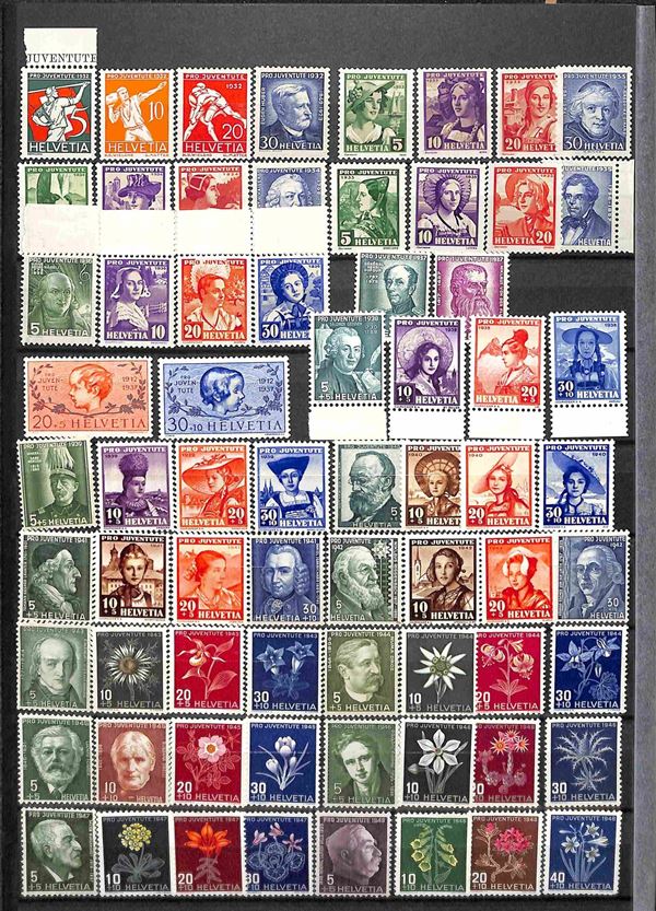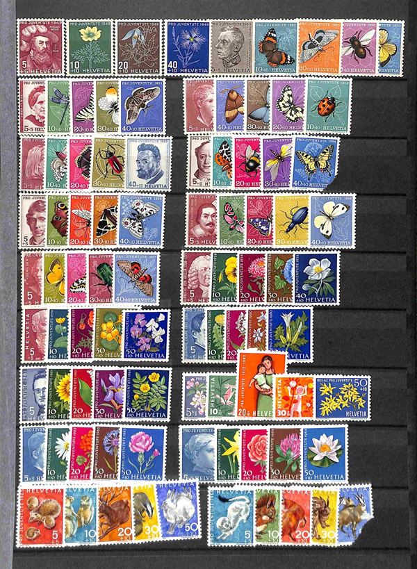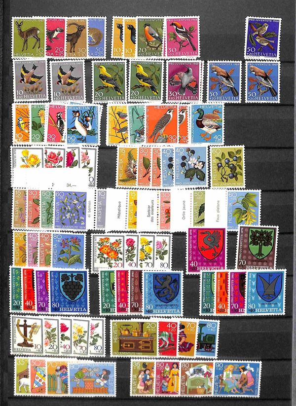 SVIZZERA - Pro Juventute - 1913/2009 - Collezione avanzata delle serie complete emesse nel periodo - principalmente gomma integra tranne alcune serie dal '40 al '60 con traccia di linguella - alcune serie con difetti ma non conteggiate - il resto oltre € 550 di catalogo - mancano anni '15 '16 '65 '66 - il resto pochissime mancanze
