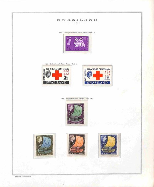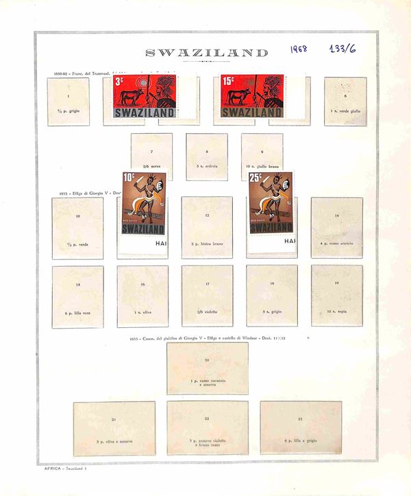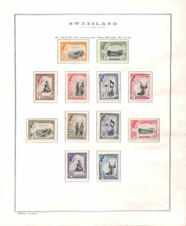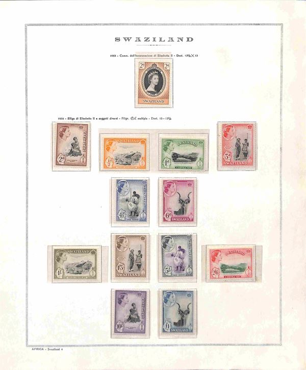 SWAZILAND - 1953/1968 - Collezione completa dei valori e serie complete del periodo (54/155) - montati in fogli Marini - gomma integra - catalogo € 200+