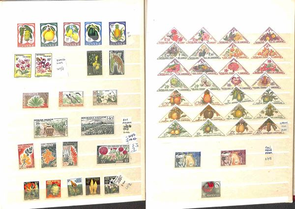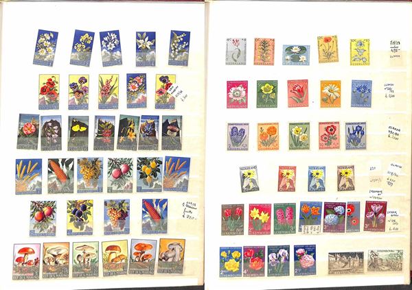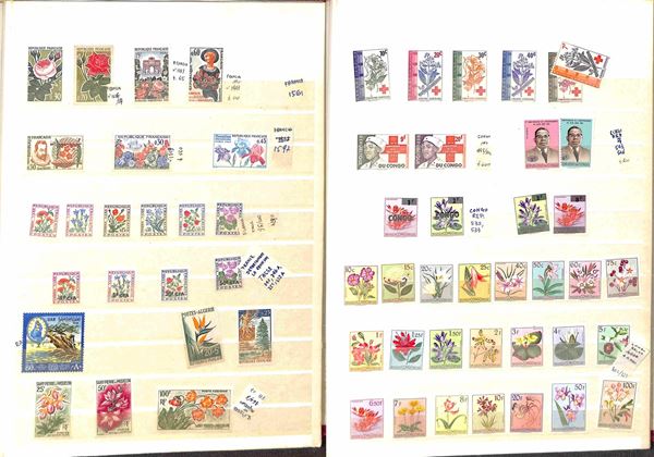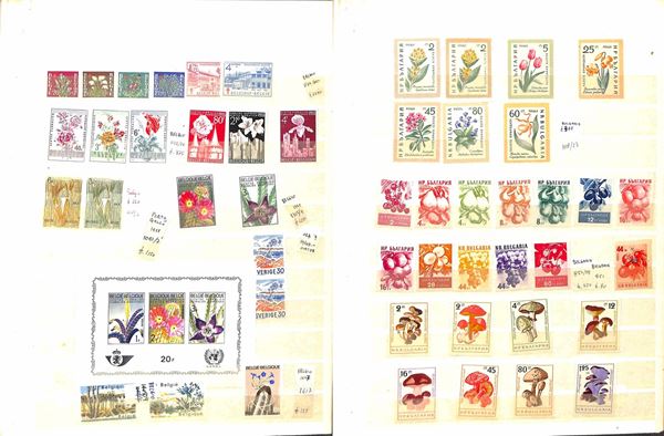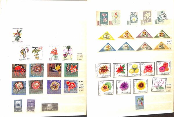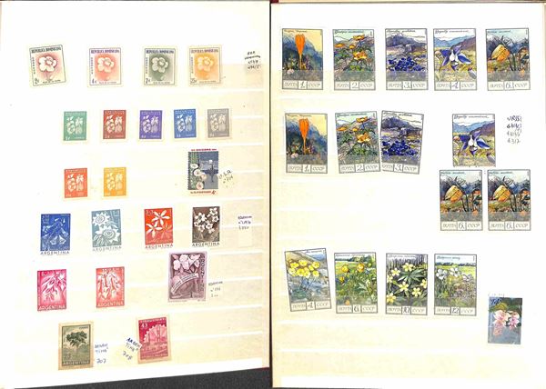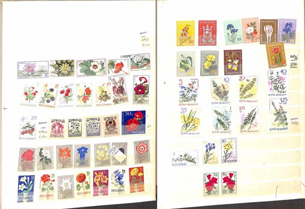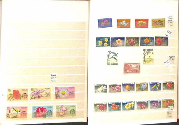 TEMATICA FIORI - 1950/1970 circa - Collezione di valori e serie complete del periodo di tutto il mondo montati in raccoglitore - nuovi con gomma originale e integra - buono stato di conservazione con diversi valori montati nel listello basso incollati da forte umidità