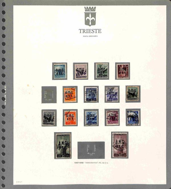 TRIESTE A - AMG-FTT - 1947/1954 - Collezione avanzata di valori eserie complete con alcune mancanze montata in album e fogli GBE - valore di catalogo oltre 800 €