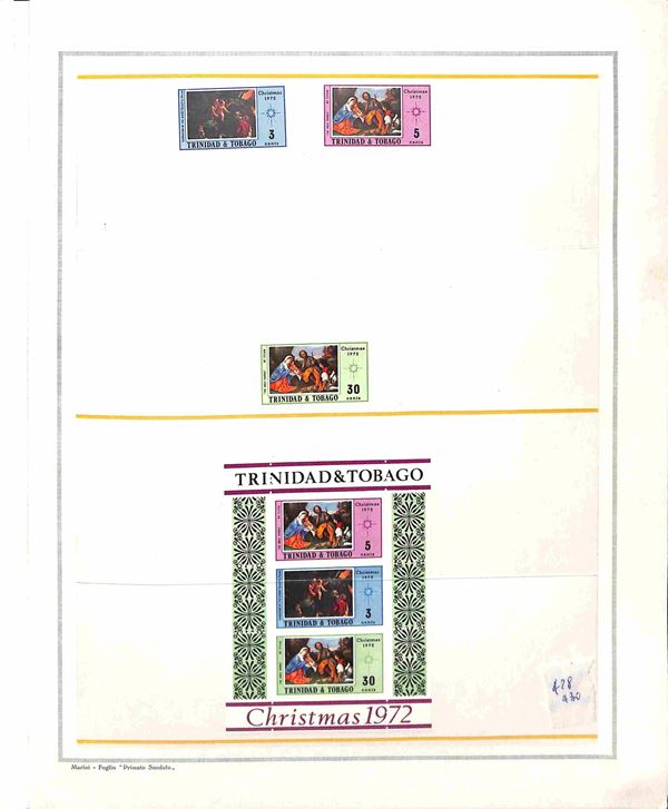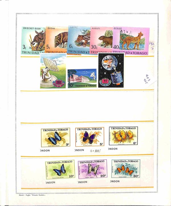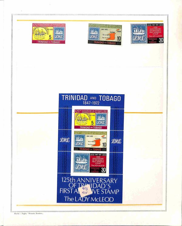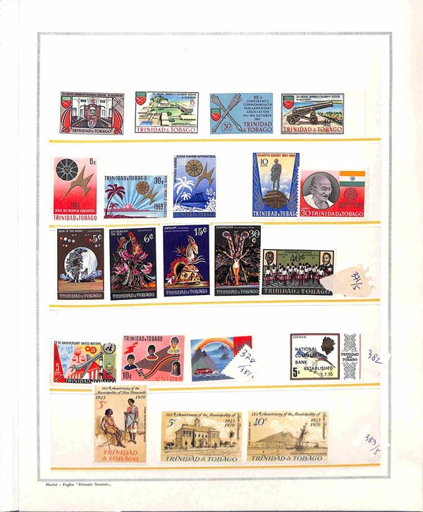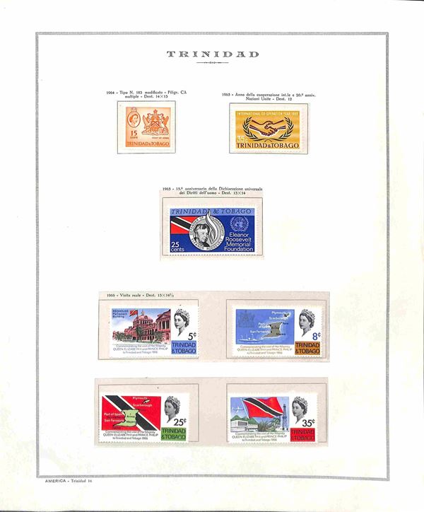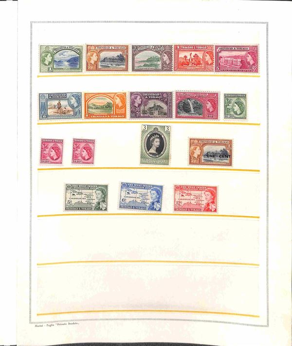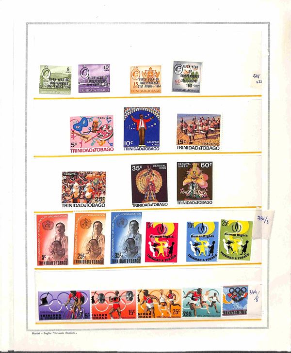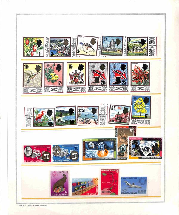 TRINIDAD E TOBAGO 1953/1972 - Collezione di valori serie complete e foglietti del periodo con alcune ripetizioni (due valori incollati) montati in fogli Marini - gomma integra - catalogo oltre € 150