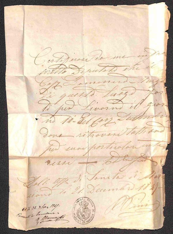 1847 (21 dicembre) - Marina di Marciana - Certificato di Sanità