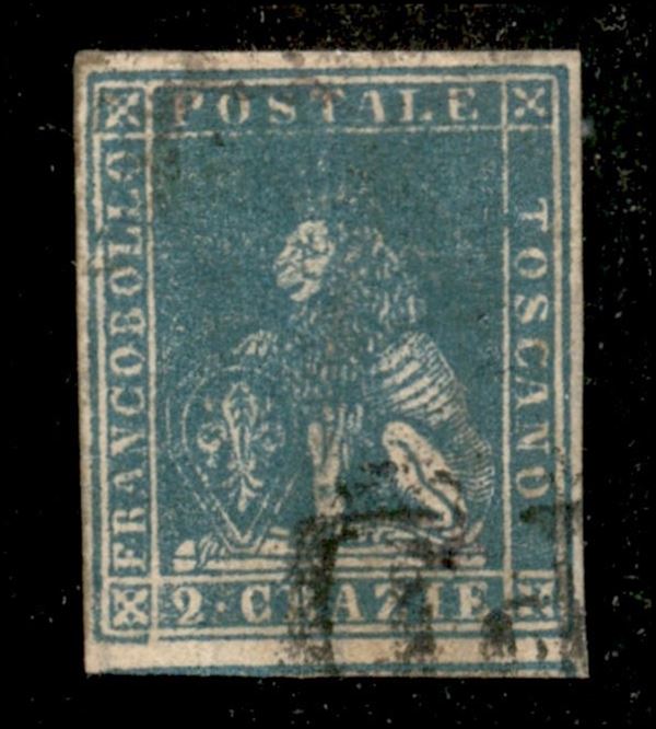 1857 - 2 crazie azzurro (13) usato - fresco e con ottimi margini