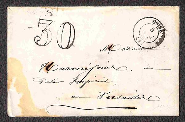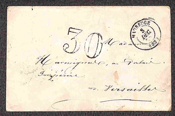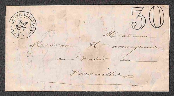 1858/1860 - due bustine + una lettera per Versailles non affrancate e tassate