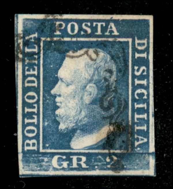 1859 - 2 grana (6f - azzurro vivo) usato - Raybaudi