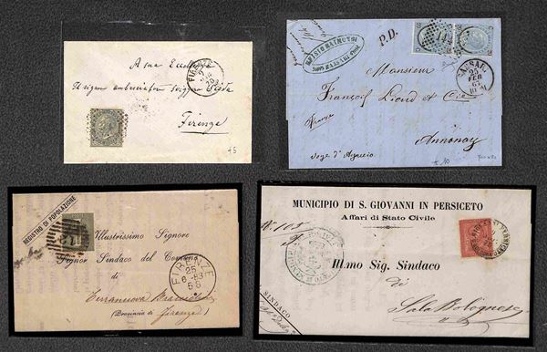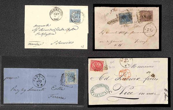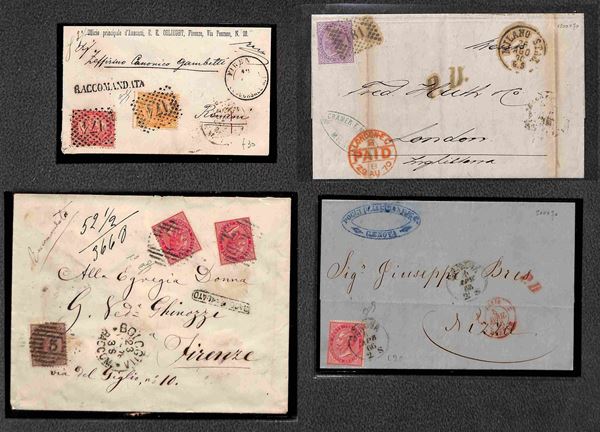1860/1881 - Vittorio Emanuele II - Insieme di 16 lettere pił 1 giornale pił 1 frammento affrancati con valori del periodo della tiratura DLR e Torino - alcune interessanti presenze