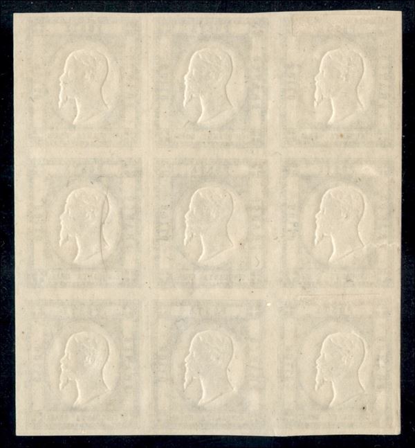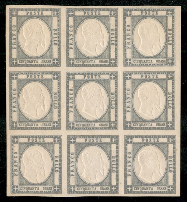 1861 - 50 grana (24) - blocco di 9 - gomma integra - cert. AG