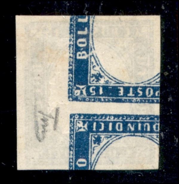 1863 - Prova di Stampa - 15 cent (11) senza effigie con controstampa capovolta al retro - nuovo senza gomma