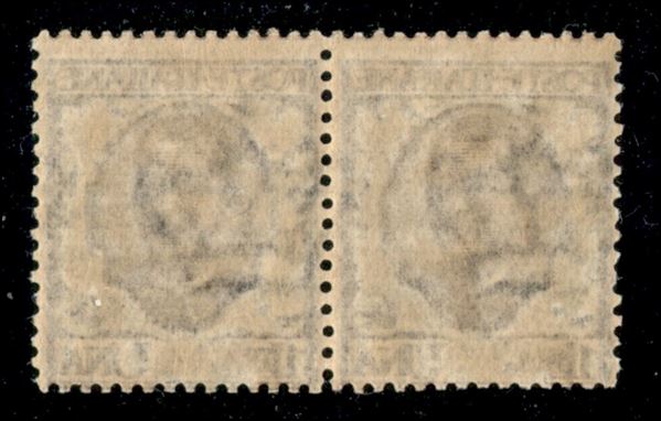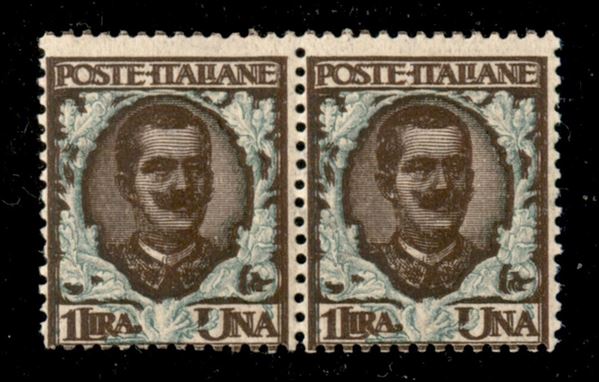 1901 - 1 lira Floreale (77b) - doppia stampa del bruno su coppia orizzontale - gomma integra