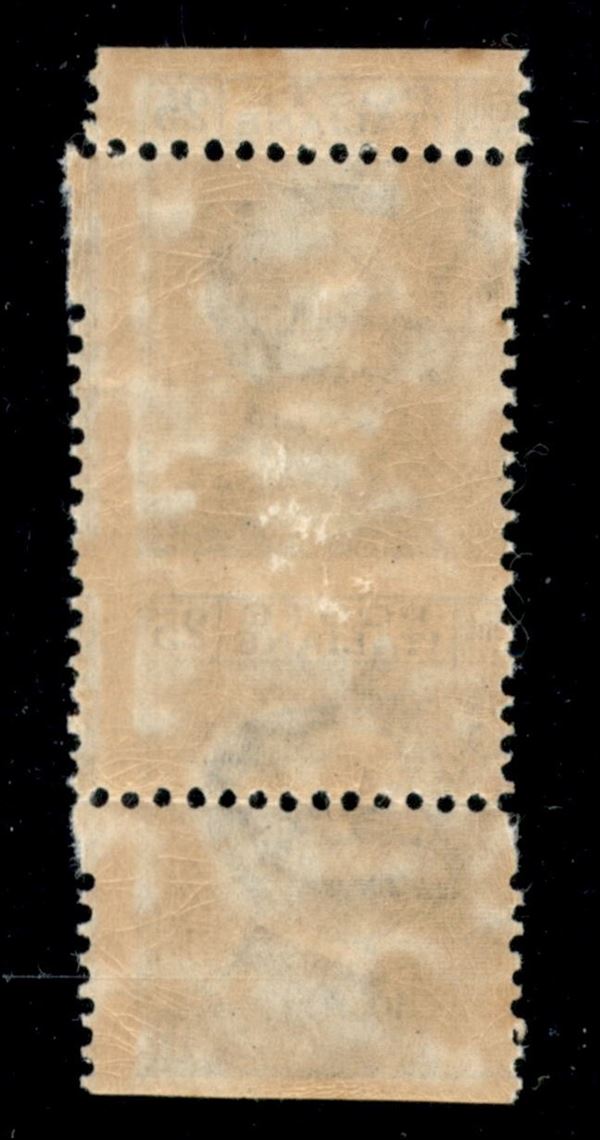 1908 - 25 cent Michetti (83mea varietà) con dentellatura orizzontale molto spostata e grande salto di dentellatura (7 mm) in alto (e parte dei vicini) - gomma integra - non catalogato