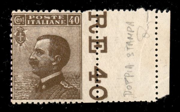 1908 - 40 cent Michetti (84nad) - dentellatura destra fortemente spostata a destra bordo foglio + probabile parziale doppia stampa - gomma integra