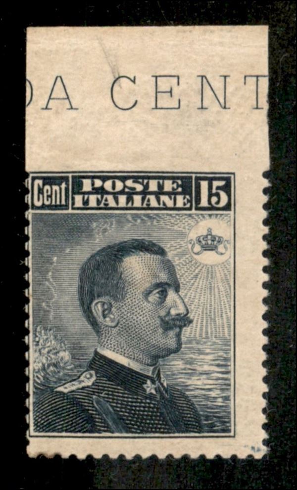 1911 - Michetti 15 cent non dentellato in alto con bordo foglio in alto (96f) - gomma integra